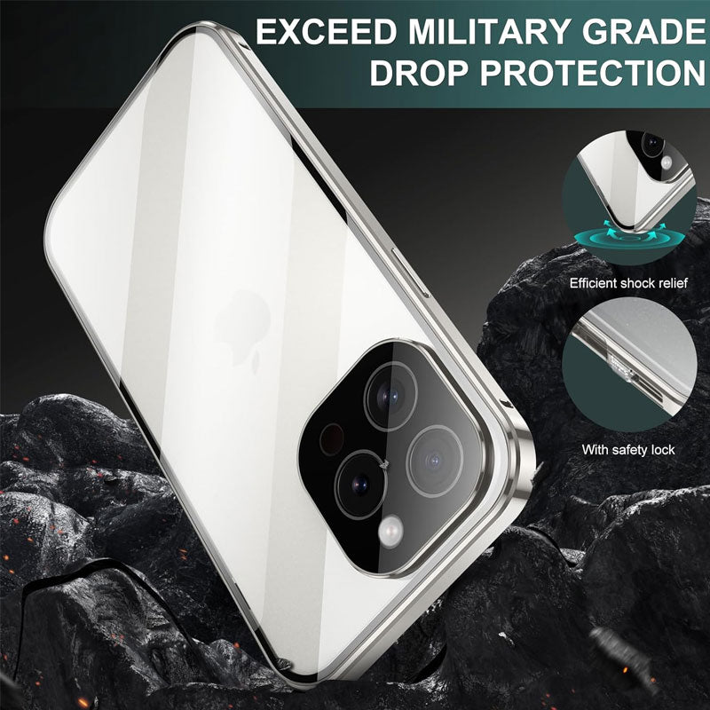 Vill du ha ett mobilskal som både hindrar din mobiltelefon från att synas och skyddar den i alla riktningar? Magneto mobilskal använder dubbelsidigt glas och en metallram för att skydda mot fall, förbättrad stark magnetisk adsorption och ett säkerhetslås för att få din telefon att känna sig trygg!