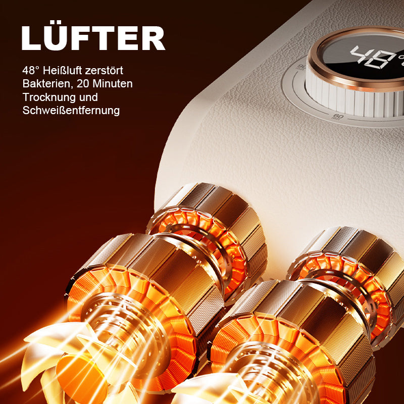 - Varmluftscirkulation: 48°C konstant temperatur, fukt avdunstar, skorna hÄller sig torra.