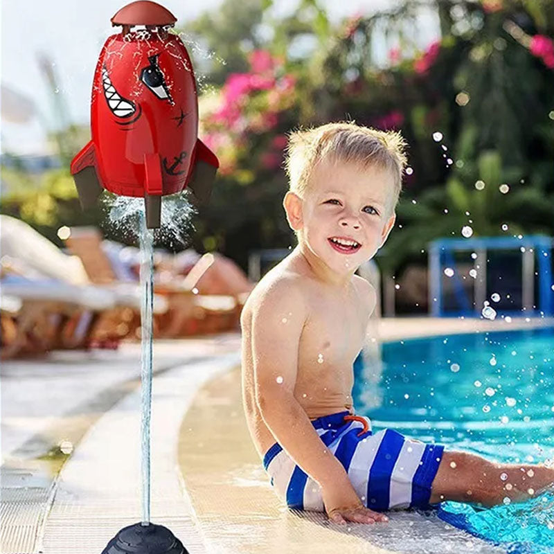 Se nÀr raketen stiger till en höjd av 1,8 meter medan den sprutar uppfriskande vatten.