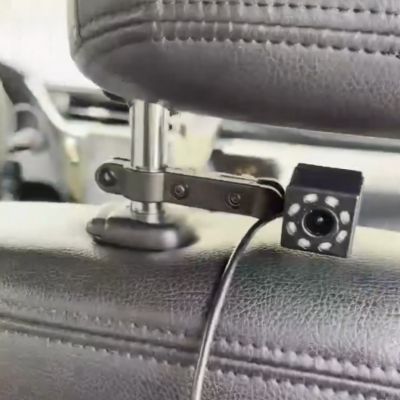 Installationen är enkel: fäst kameran på nackstödet i baksätet med det medföljande fästet. Anslut skärmen till cigarettändaruttaget, och du är klar!