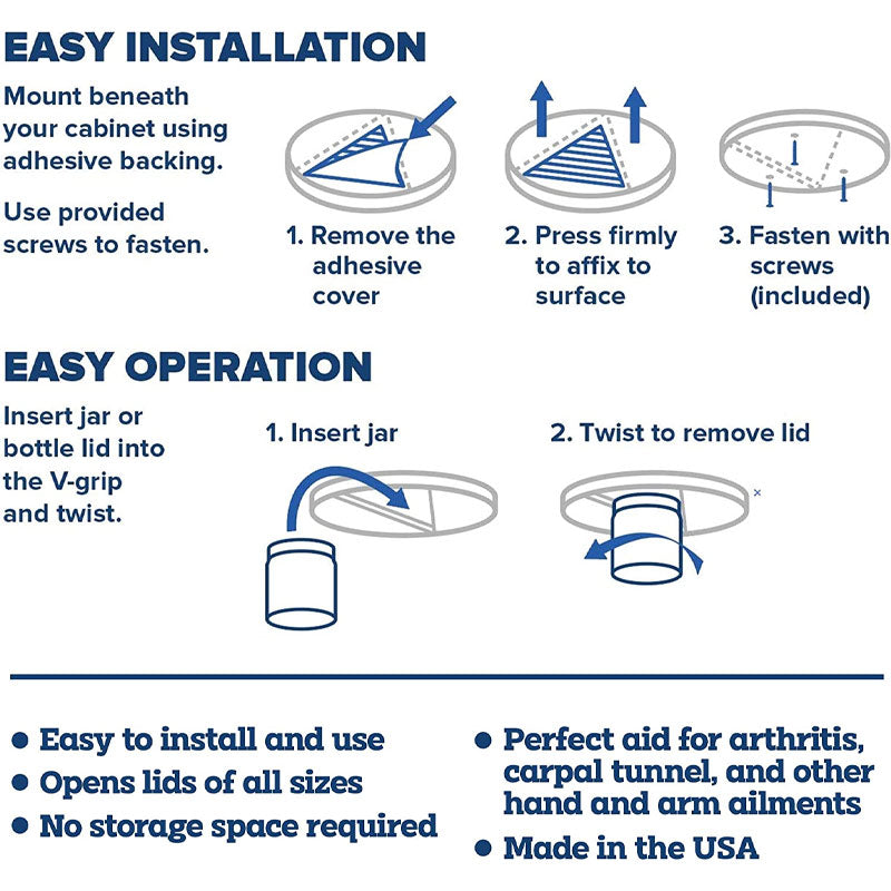 - STABIL & halkfri - Tillverkad av hållbara material. Dessa enhandsprylar använder starka metalltänder för att greppa alla storlekar av lock för ett fast grepp. Kräver mindre styrka samtidigt som det ger mer säkerhet.