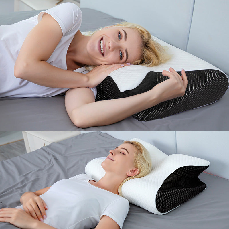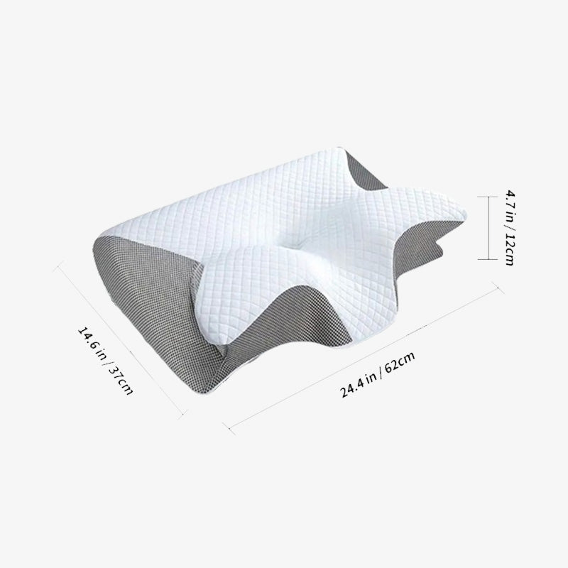 Dreamz ortopediska kudde Àr utformad för att ge dig den sömn du förtjÀnar. Dess unika fjÀrilsformade design ger perfekt ergonomiskt stöd oavsett om du sover pÄ sidan, ryggen eller magen.