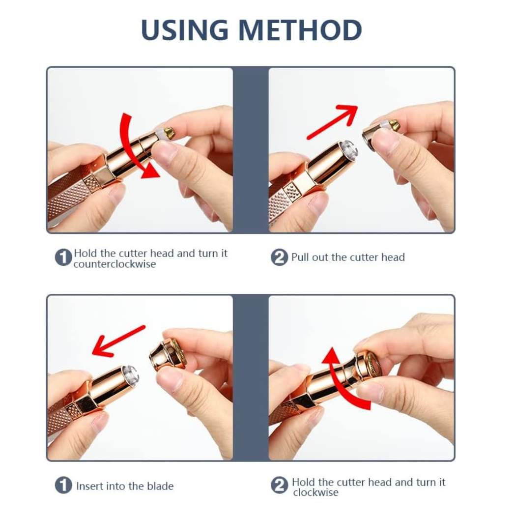 Denna läppstiftsrakapparat är en 4-i-1 skönhetslösning för enkelt skönhetsunderhåll. De utbytbara huvudena trimmar näshår, ögonbryn, ansiktsfnuggar och bikinilinjen utan att du behöver flera verktyg. Njut av smärtfri, exakt trimning som ger självförtroende och bekvämlighet i vardagen.