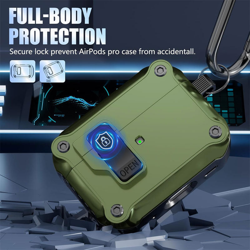 Vårt Mecha hörlursskydd har en innovativ automatisk tryckknapp med ett uppgraderat dolt säkerhetslås. Tryck helt enkelt på ”öppna”-knappen för att enkelt komma åt dina hörlurar. Säkerhetslåset säkerställer att fodralet förblir ordentligt stängt, vilket förhindrar oavsiktliga öppningar när du bär eller tappar dina hörlurar. Den här praktiska och säkra designen gör att du kan öppna fodralet med en hand, vilket gör ditt dagliga liv bekvämare.