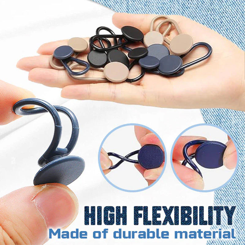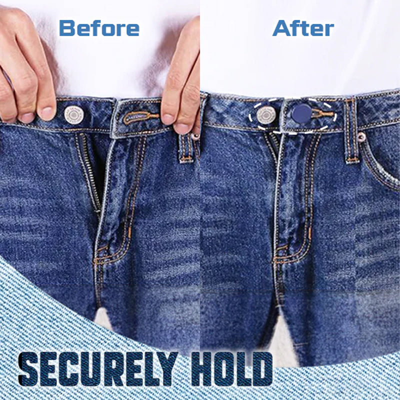 Det här praktiska midjeförlängande knappverktyget gör att alla tajta jeans sitter bättre, lösare och bekvämare på nolltid. Perfekt för jeans, byxor, kostymbyxor, slacks, kjolar, utsvängda byxor, shorts, läderbyxor eller till och med för kostymmanschetter och många fler möjligheter. Allt du behöver göra är att haka fast den elastiska öglan på den befintliga knappen, sedan föra in förlängningsknappen genom byxans knapphål och du är klar. Inget behov av professionella ändringar eller krångel med manuella sömnadsjusteringar för att skapa ett extra rum för dina byxor längre. Och vad är mer? Knappförlängaren kan enkelt tas bort snabbt, så att du kan bära dina favoritjeans när som helst, oavsett om du ska upp eller ner.