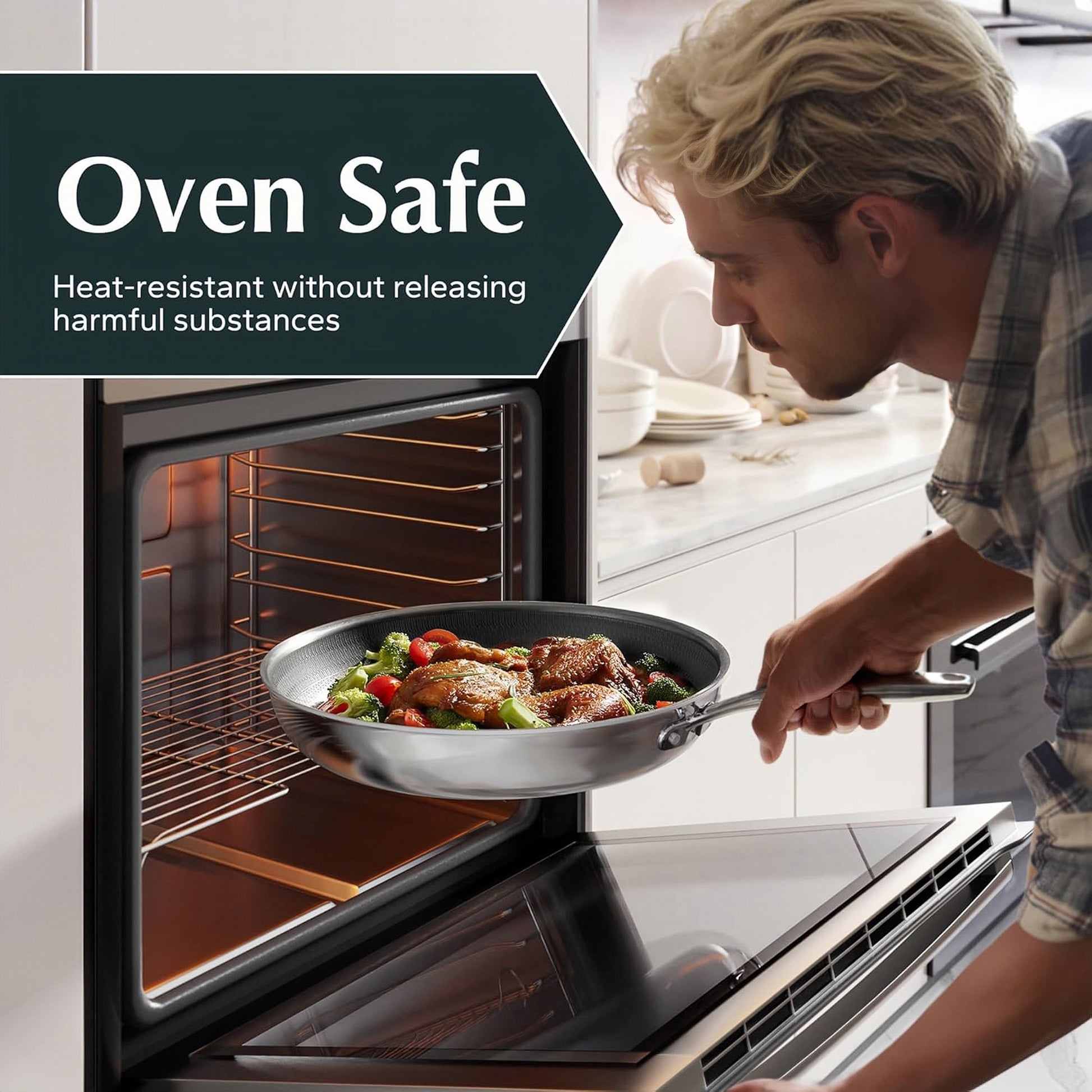 Dess plana yta säkerställer jämn värmefördelning, vilket garanterar utmärkta resultat. Non-stick-beläggning i rostfritt stål gör matlagning och rengöring otroligt enkelt. Den är hållbar, effektiv och enkel att använda – en riktig arbetshäst i ditt kök.