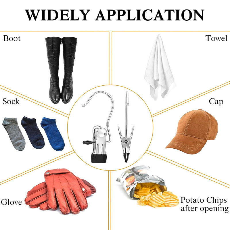 【SOLID KONSTRUKTION & 360° ROTERANDE】- Legginghängarna är huvudsakligen gjorda av rostfritt stålmaterial, rostbeständigt, vattentätt och korrosionsbeständigt. Skulle inte böjas, deformeras eller gå sönder. Varje klipp kan producera en enorm klämkraft och hålla dina kläder tätt. 360 ° roterande klämmor för enkel hängning och uttagning.
