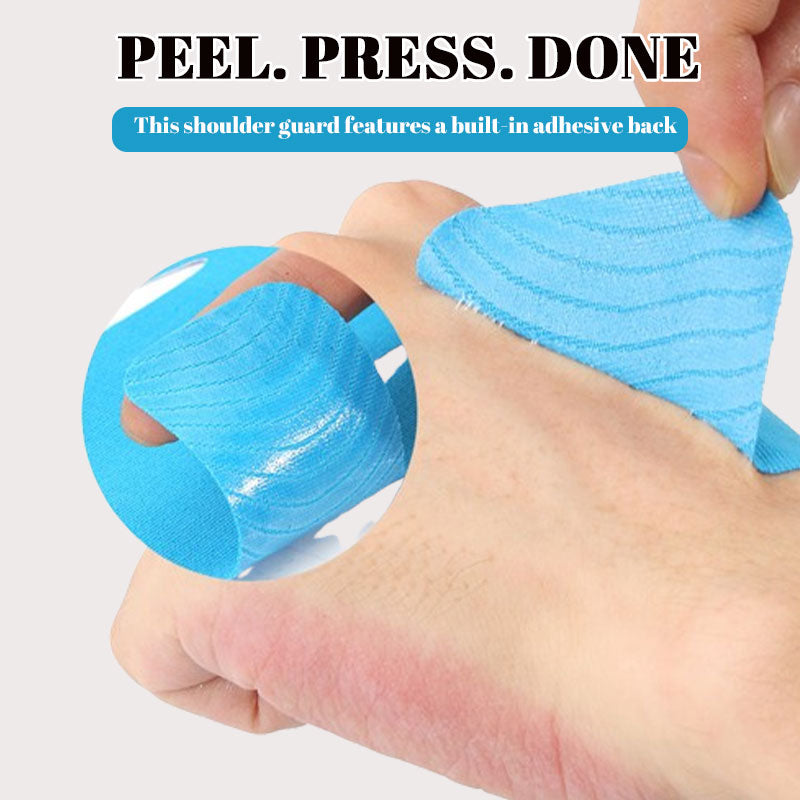 Denna axelskydd har en inbyggd sjĂ€lvhĂ€ftande baksida â bara att dra av och trycka fast.