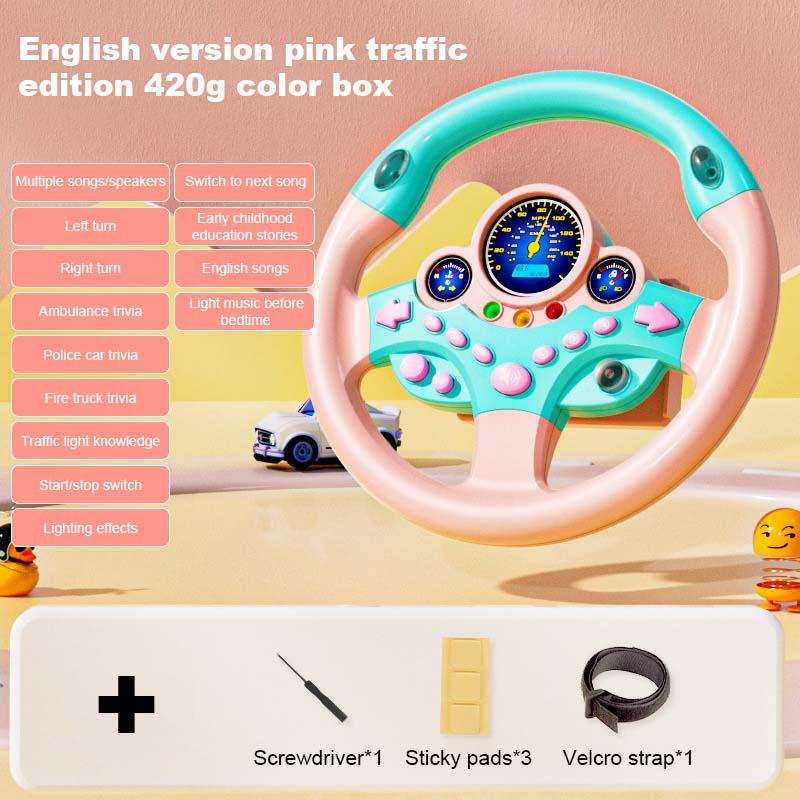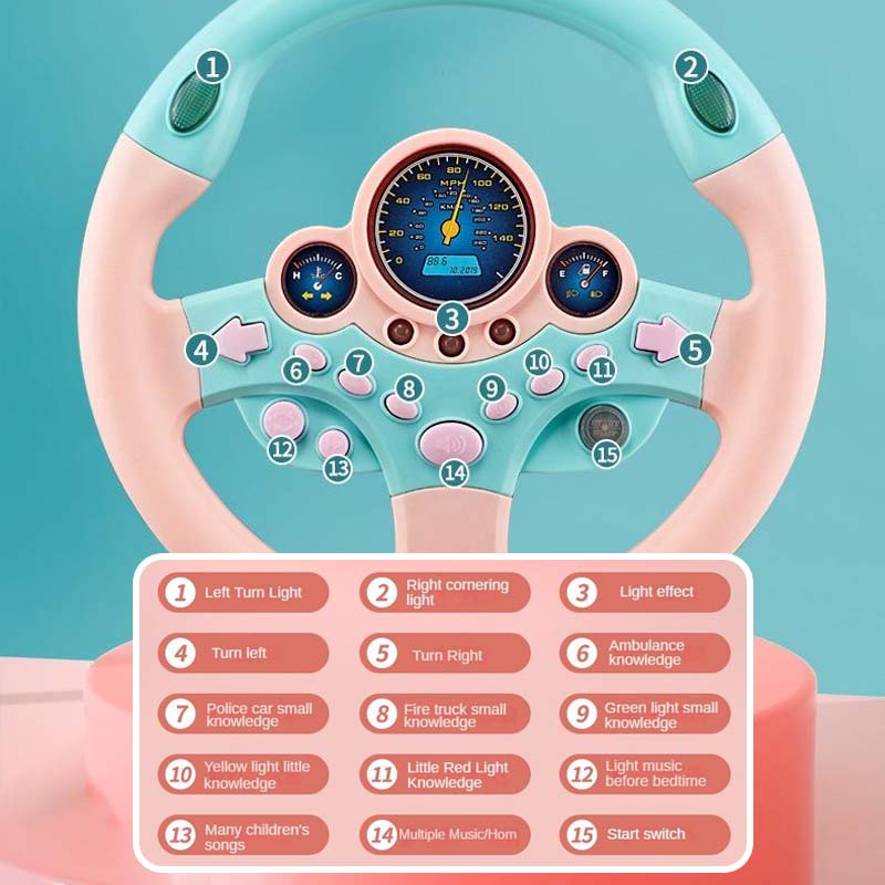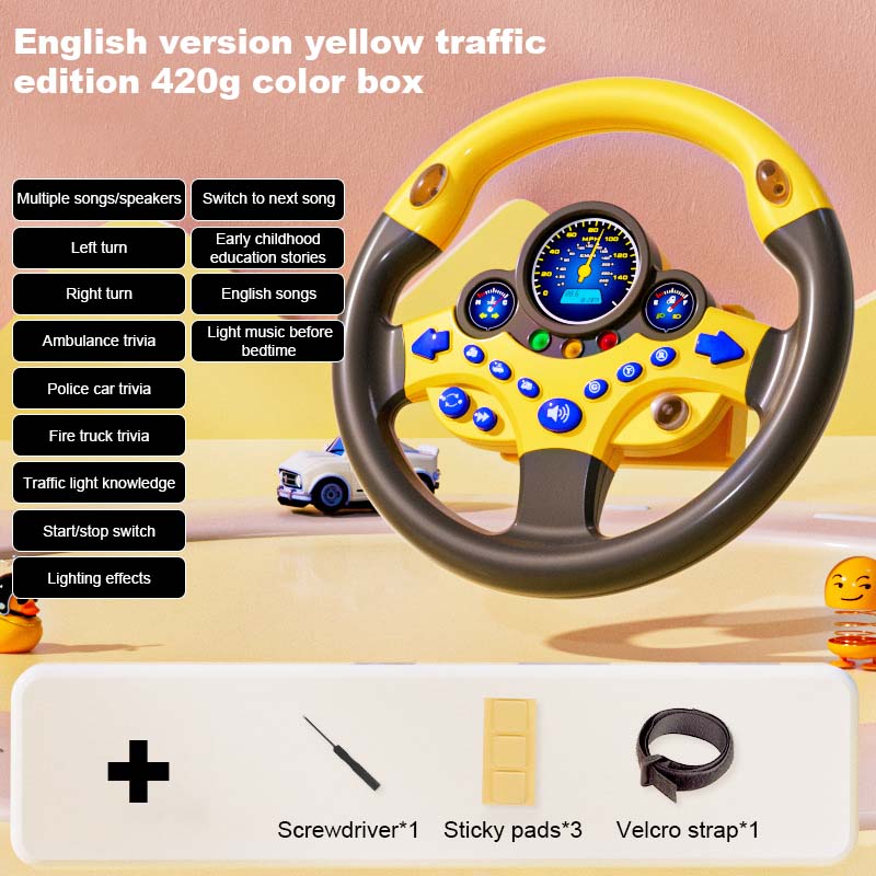 Låt ditt barn upptäcka körglädjen på ett säkert och roligt sätt med denna interaktiva simulerade kör-ratt. Perfekt för att stimulera fantasin och motoriken samtidigt som barnet lär sig om trafik på ett lekfullt sätt.