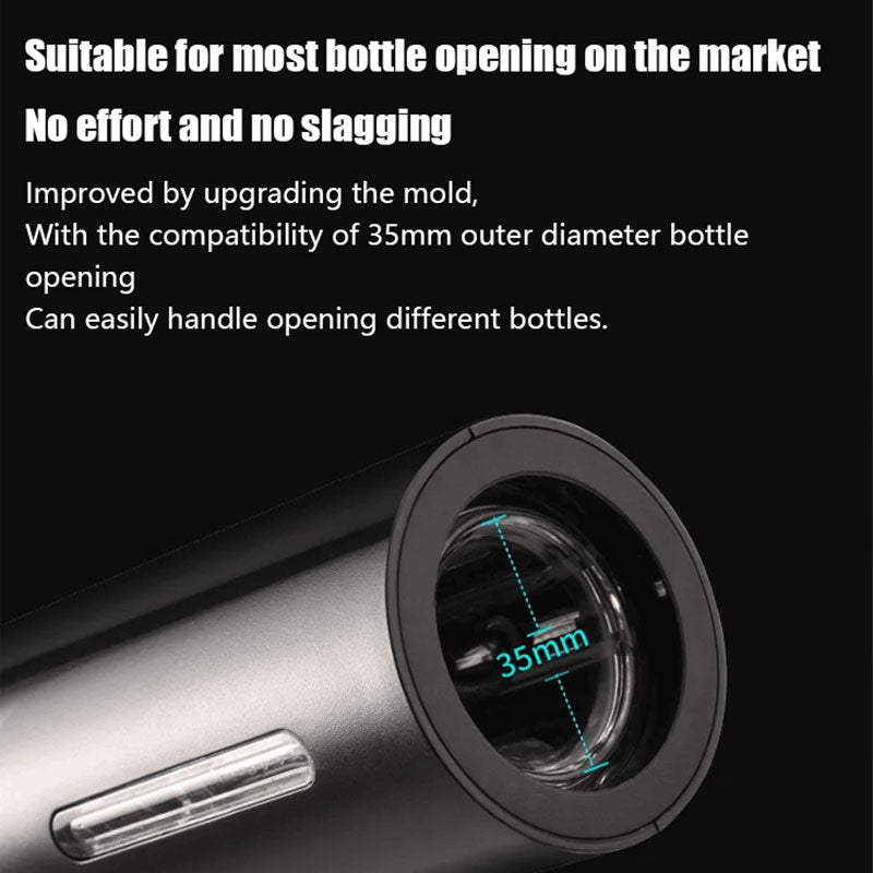Förbättrad genom uppgradering av formen, med kompatibilitet för flasköppning med 35 mm ytterdiameter Kan enkelt hantera öppning av olika flaskor.Enkel och elegant vinupphällningInget läckage för att skydda vinetiketter