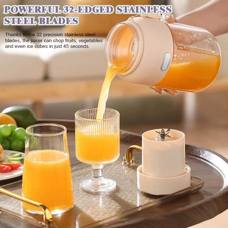 Det uppladdningsbara batteriet med hög kapacitet garanterar en lÄng driftstid sÄ att du kan njuta av din favoritjuice var som helst och nÀr som helst. Perfekt för resor!