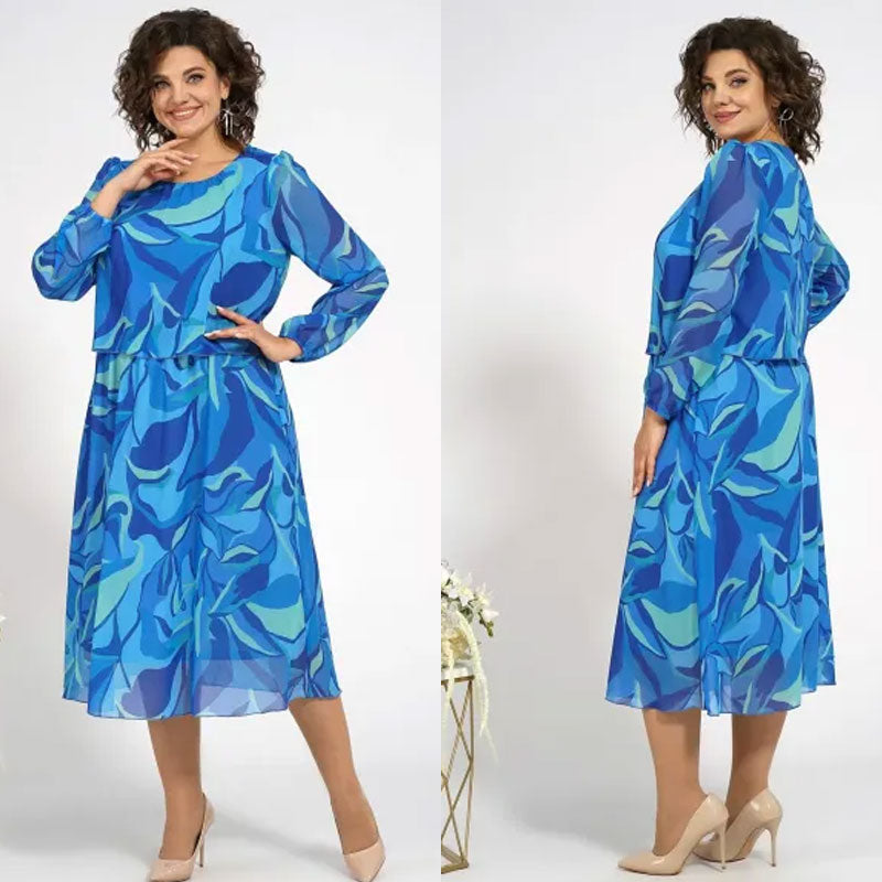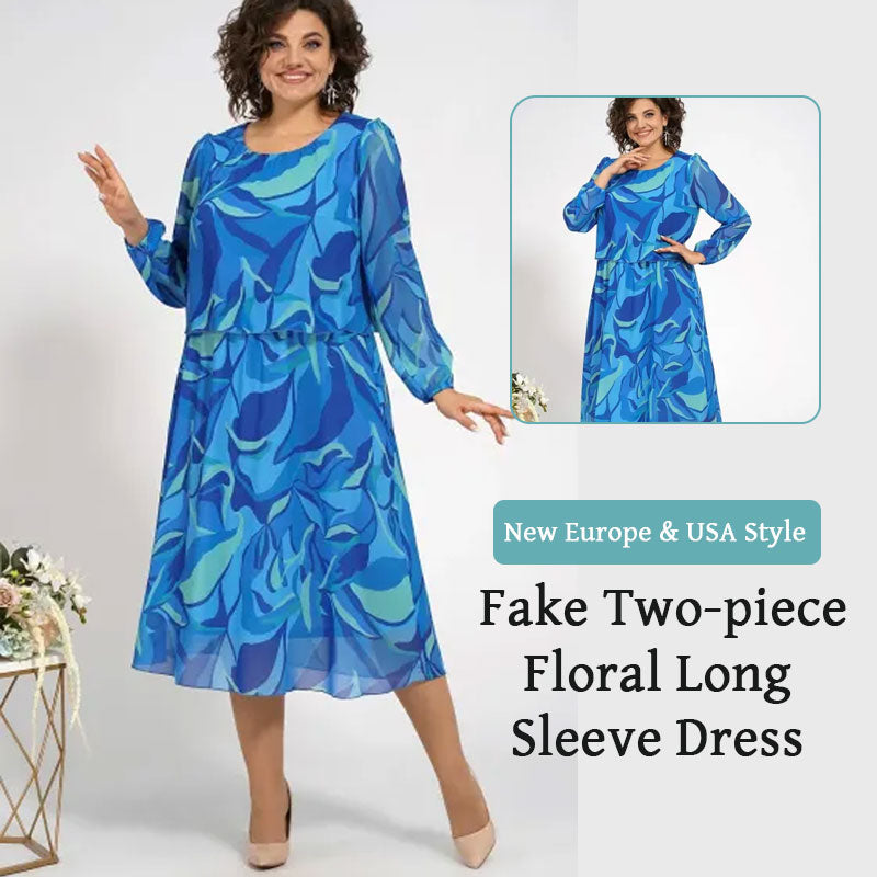 - 1 x  Ny Europa & USA Stil Falsk TvÄdelad Blommig LÄngÀrmad KlÀnning