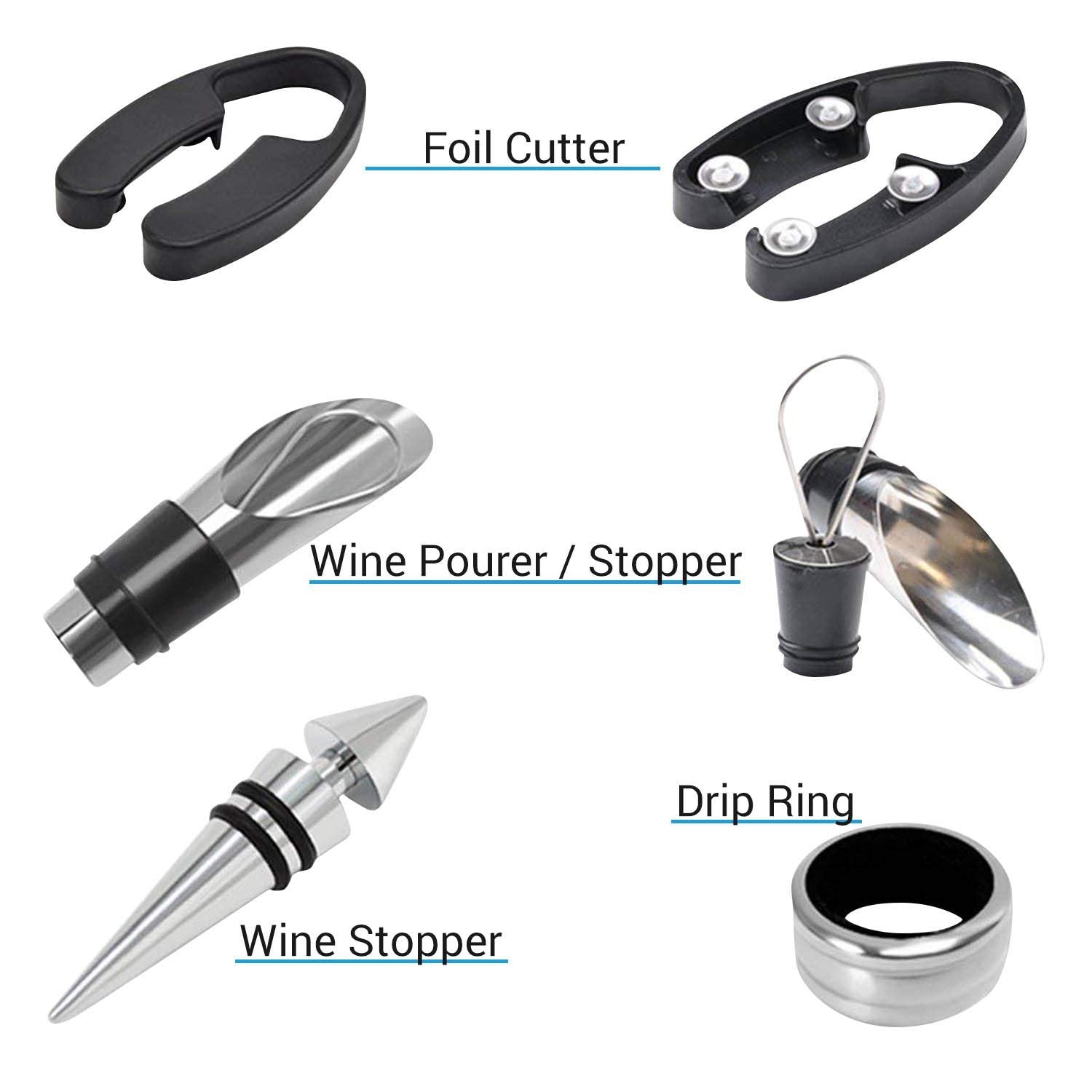 Mångsidigt och mångsidigt: Detta vinpresentset är perfekt för att smidigt och snabbt öppna flaskor, lufta vin och stänga flaskor för att hålla dem fräscha - problemfritt. Imponera på dina gäster och njut av dina drinkar med lätthet.