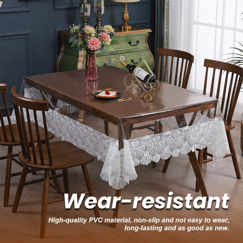Denna PVC-diskfria bordsduk kan ge dagligt skydd och lägga till en touch av lyx. Vattentät och oljesäker, slitstark och halkfri, den kan enkelt klara av olika familjemiddagsscener och hålla matbordet rent och vackert. En mängd olika storlekar och stilar finns tillgängliga, perfekt matchande olika familjestilar, vilket gör matbordet mer texturerat.