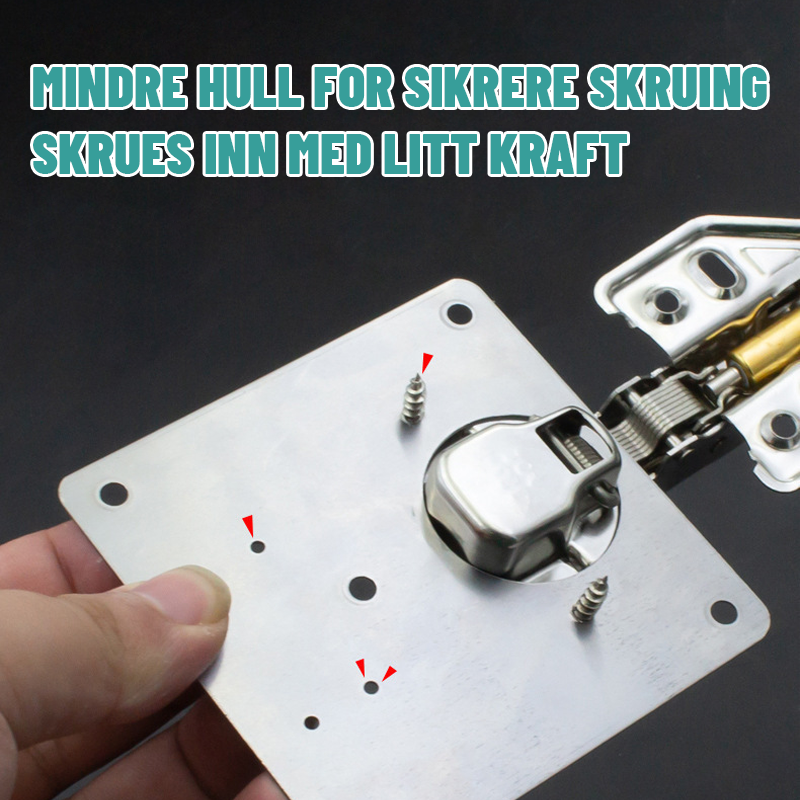 🛡️ Förstärkta gångjärnsfästen:Förstärk dina skåpdörrar med förstärkta gångjärnsfästen. Förhindrar nedhängning, snedställning och andra vanliga problem i samband med gångjärnsslitage. Njut av smidig och tillförlitlig dörrfunktion.