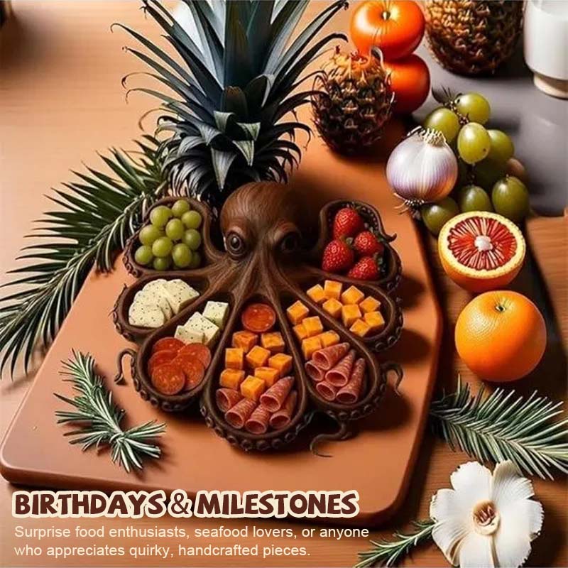 Den släta, livsmedelssäkra ytan gör den lätt att rengöra och bläckfiskformen ger en lekfull känsla - tentaklerna skapar praktiska sektioner för att organisera olika snacks.