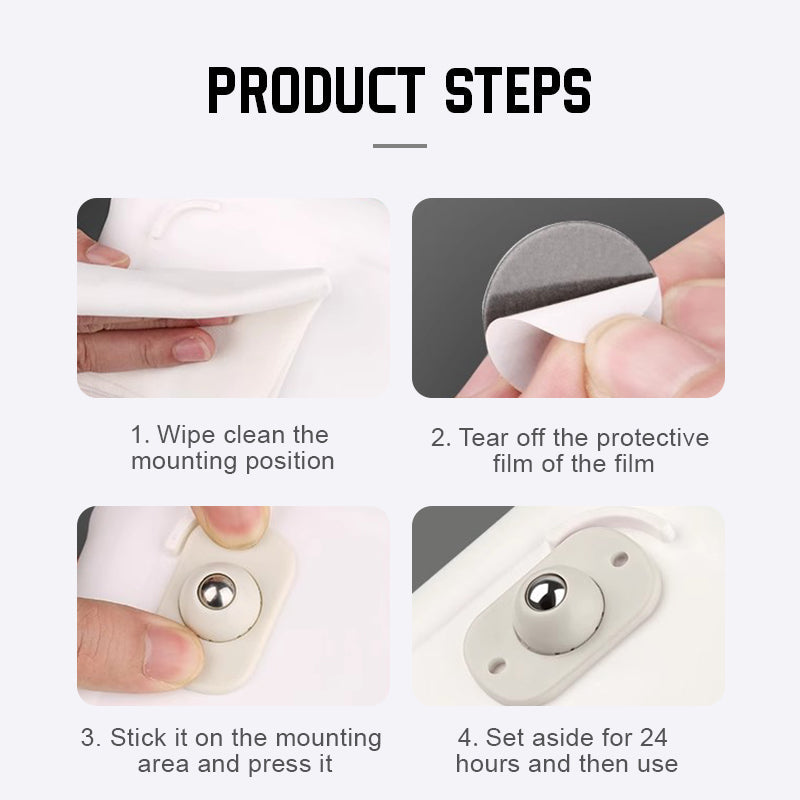 Enkel installation: Dra bara bort den självhäftande baksidan och fäst hjulen på undersidan av ditt föremål för omedelbar rörelse utan att påverka dess utseende.