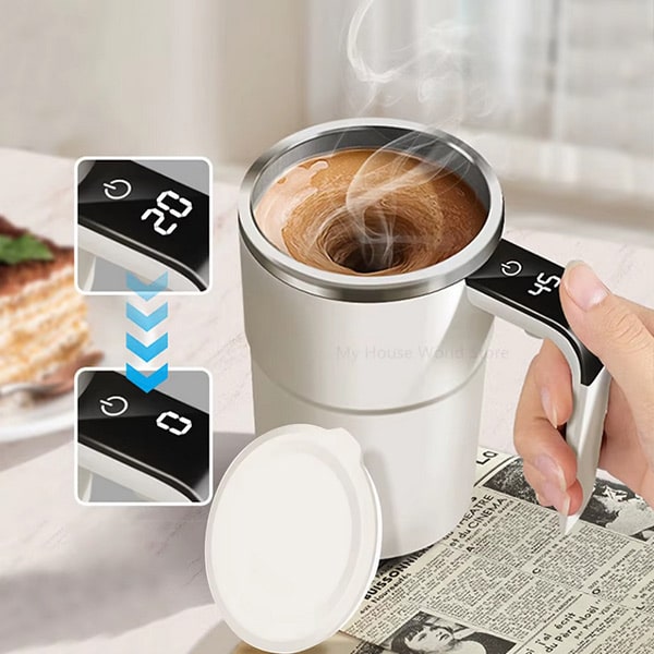Denna blandningskopp blandar automatiskt kaffe, te eller varm choklad för en perfekt slät upplevelse - ingen sked behövs.
