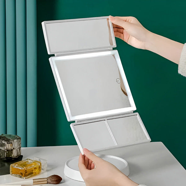 💄 Få en felfri makeup med den LED-upplysta vikbara spegeln.