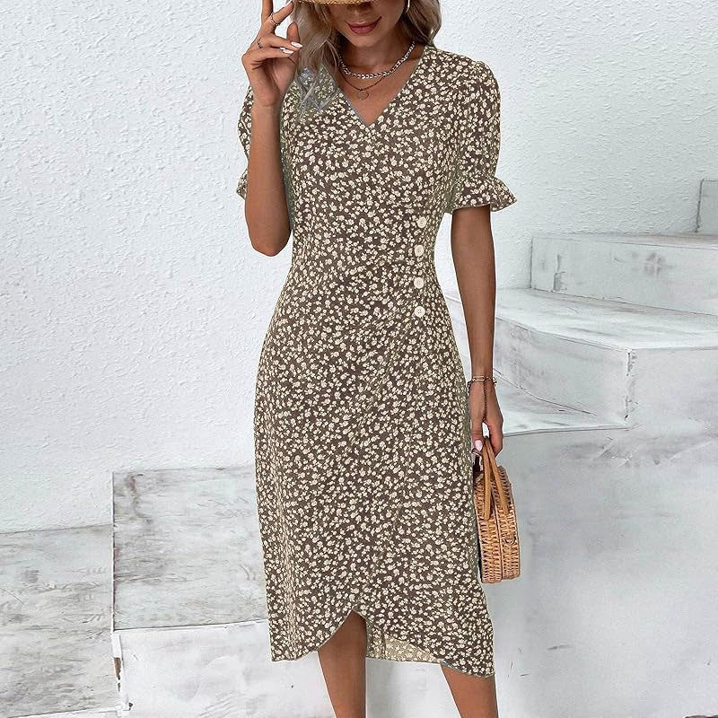 - 1 x Avslappnad omlottklänning med blommor för kvinnor