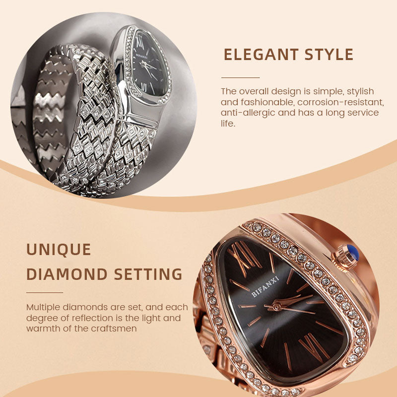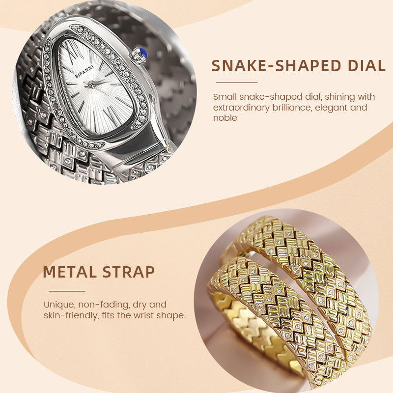 Föredrar du att bära något förutsägbart - eller något oförglömligt? Den här ormformade klockan är designad för att höja din närvaro och samtidigt ge din stil en touch av djärvhet. Den visar inte bara tiden, den berättar en historia - din. När du tar på dig den är det inte bara en accessoar, utan du förvandlar varje look till ett statement av;självförtroende.
