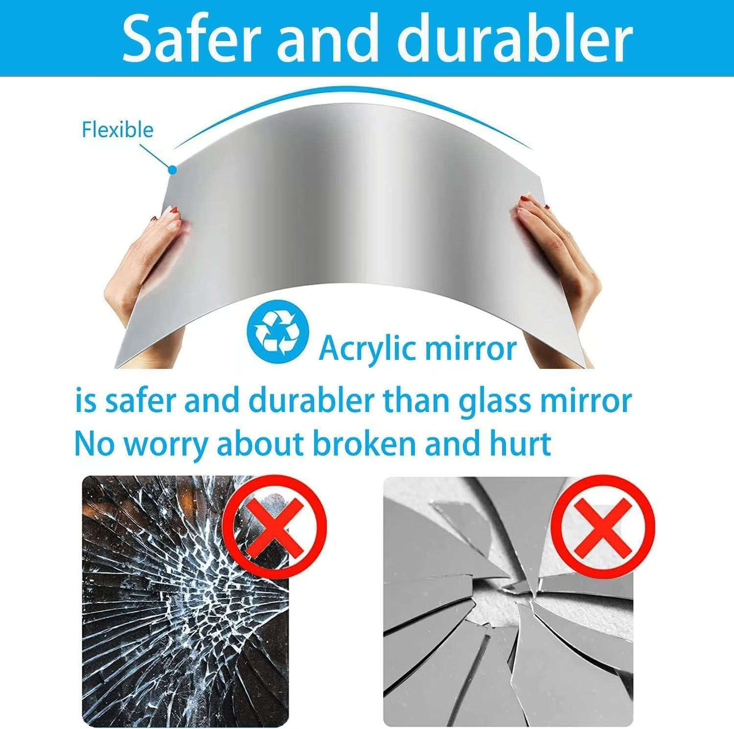 Högkvalitativ PET, täckt med en blå skyddsfilm, riv skyddsfilmen för att se tydlig spegeleffekt.