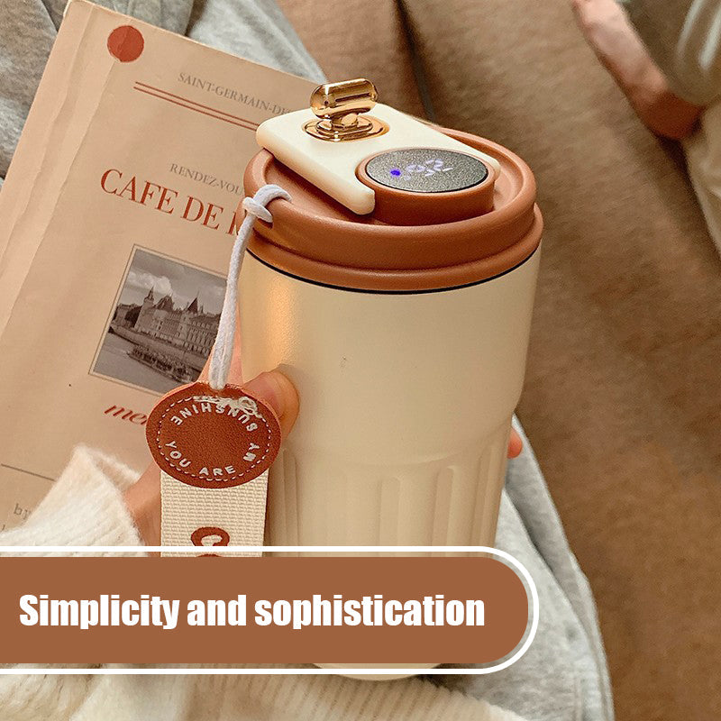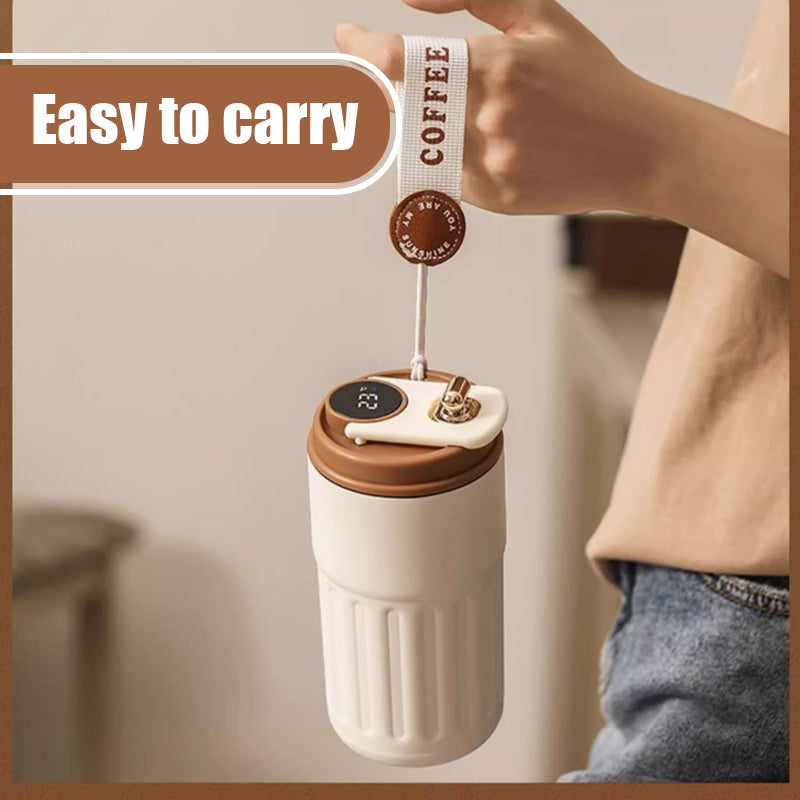 Vi presenterar vår bärbara termomugg för kaffe med temperaturvisning, ett måste för kaffeälskare som uppskattar precision och bekvämlighet.