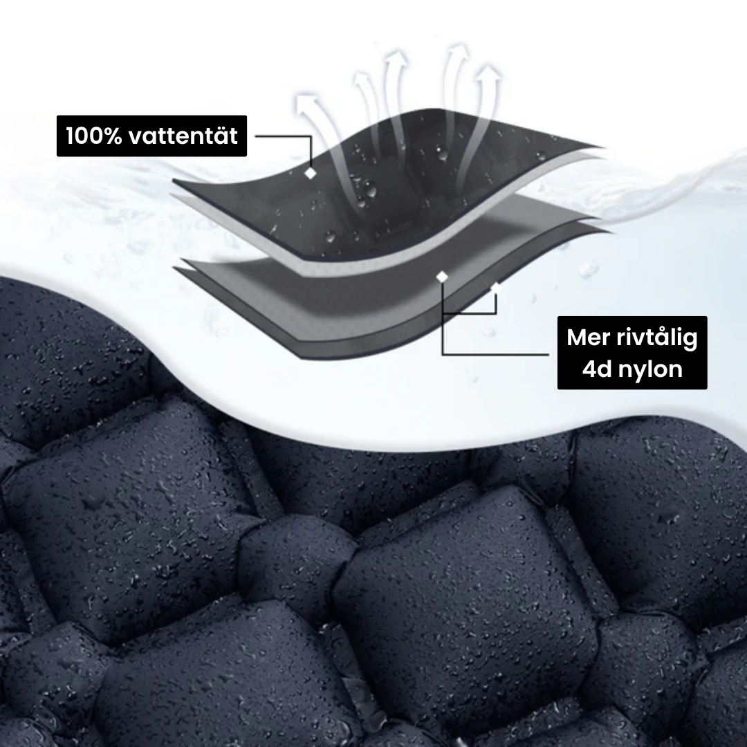 Extremt rivtåligt, tryckbeständigt och vattentätt - det här liggunderlaget klarar alla äventyr, är ostoppbart även i regn eller tuff terräng och kan till och med användas som luftmadrass på vattnet!
