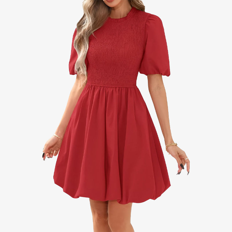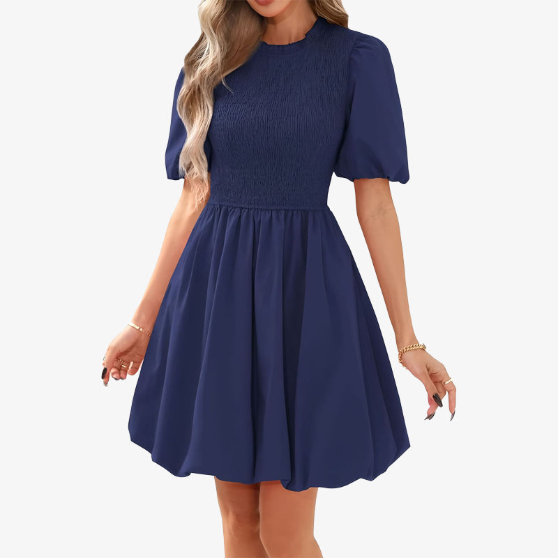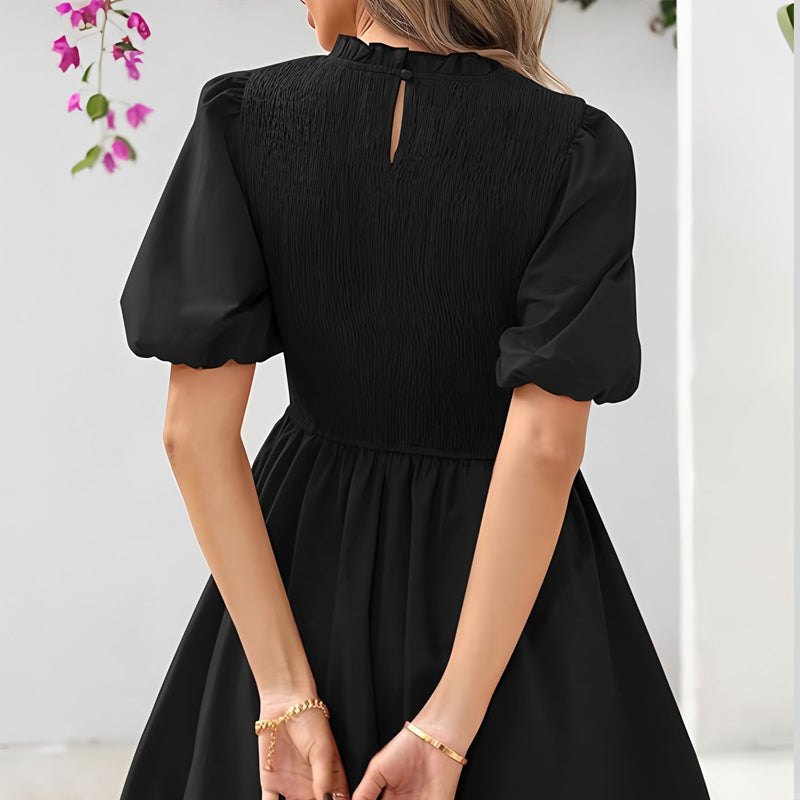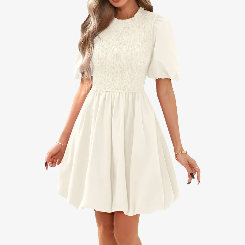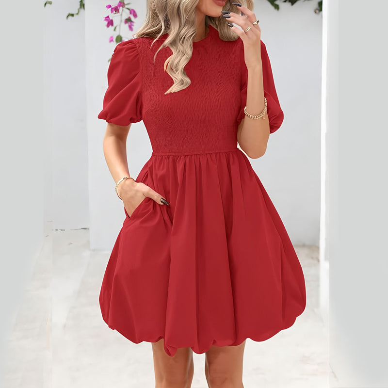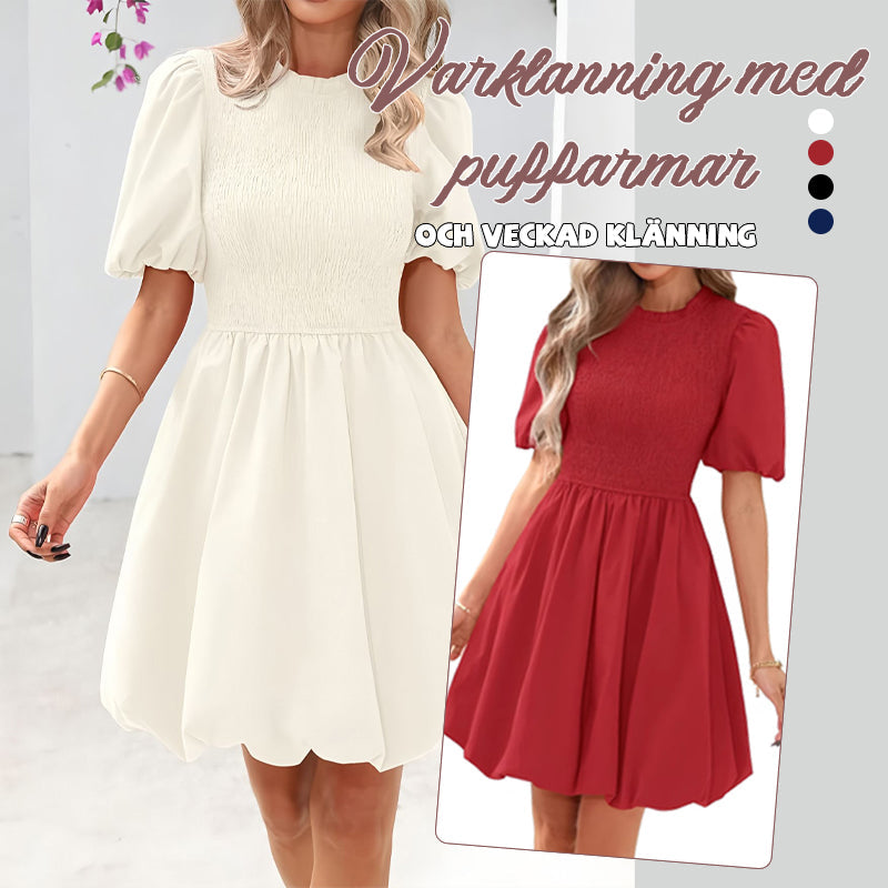 Vårklänning med puffärmar och veckad klänning