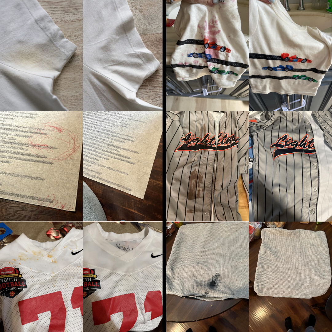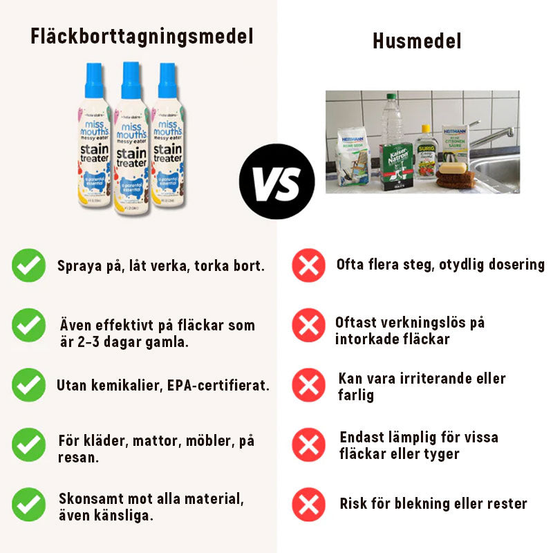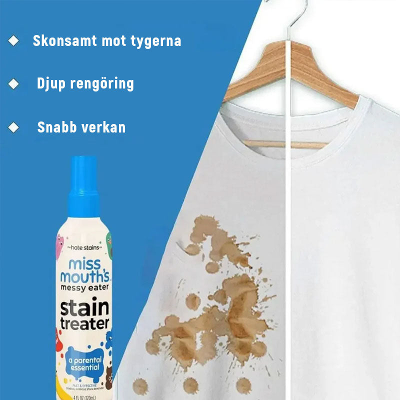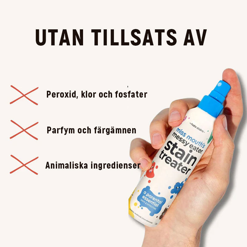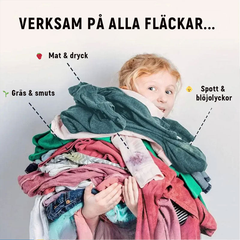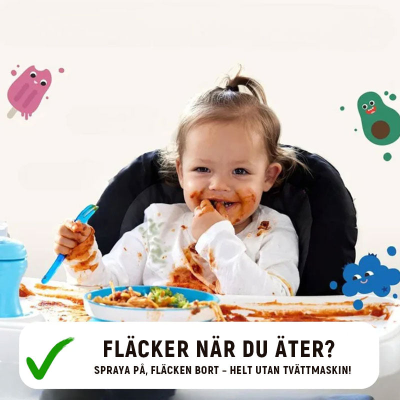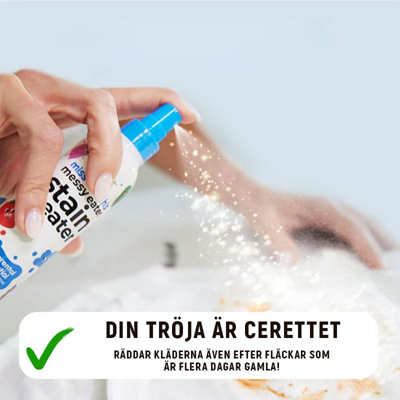 Oavsett om det är tomatsås på lunchen, sminkfläckar på kragen, bär på ditt barns T-shirt eller spott i ditt barns sparkdräkt - med den här sprayen behöver du aldrig mer gissa om fläcken kommer att gå bort igen. Den kommer ut. Punkt slut.