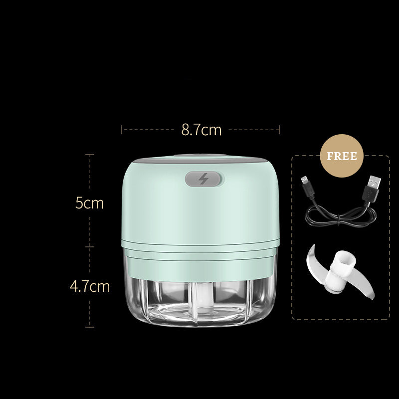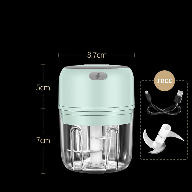 Elektrisk hackare :Elektrisk vitlökshackare levereras med laddningskabel. Tryck bara på en knapp för att hacka salladsingredienser eller blanda kryddor. Perfekt för familjens lilla hackare eller bärbar matberedare för barn.