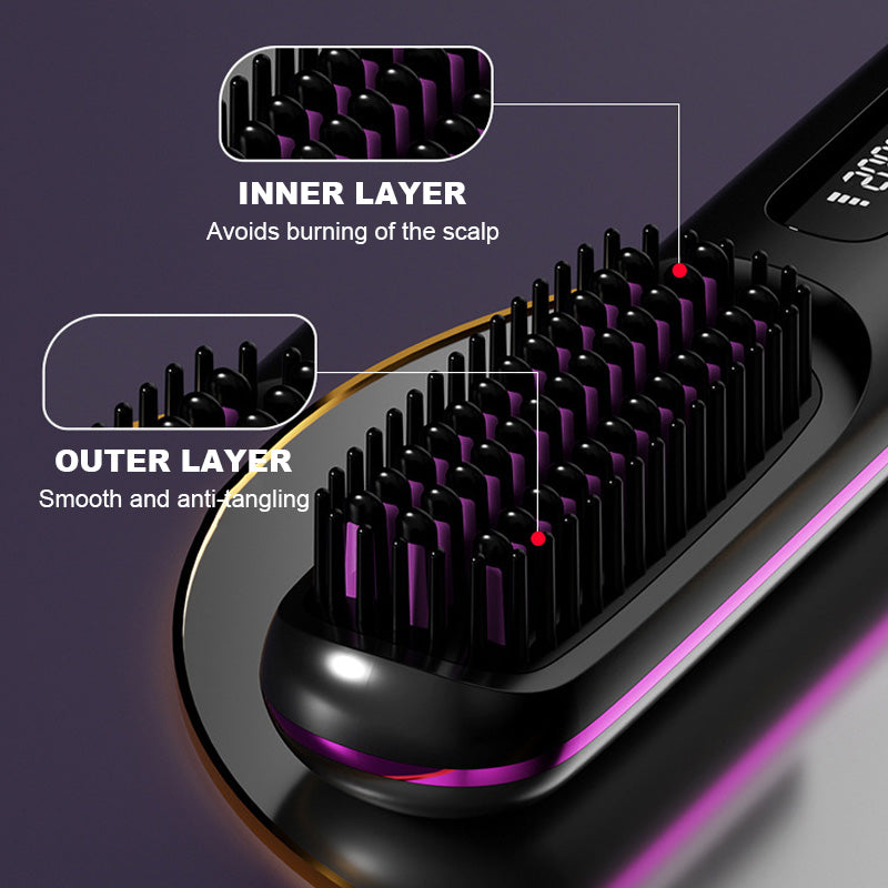 Uppnå ett slätt hår av salongskvalitet med vår trådlösa plattång - utformad för att ge dig friheten att styla utan att vara bunden av sladdar. Kompakt, lätt och ultraportabel, perfekt för resor, snabba uppfräschningar eller förvandlingar på språng.