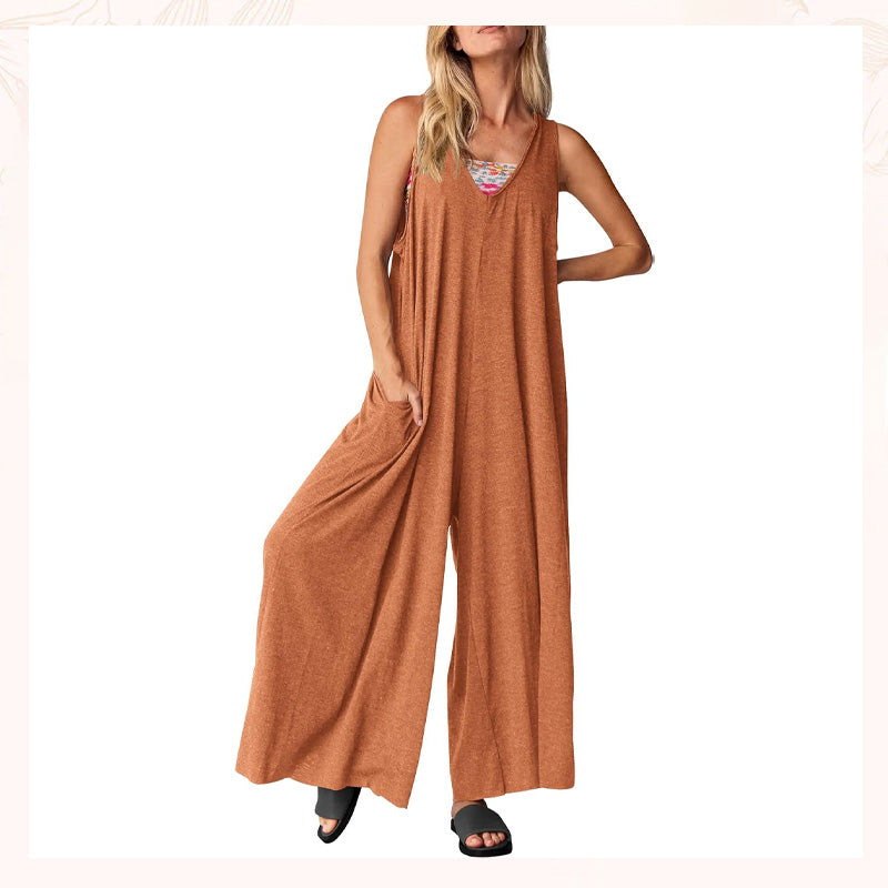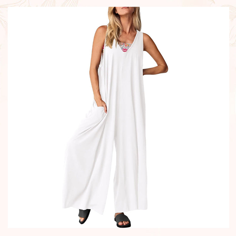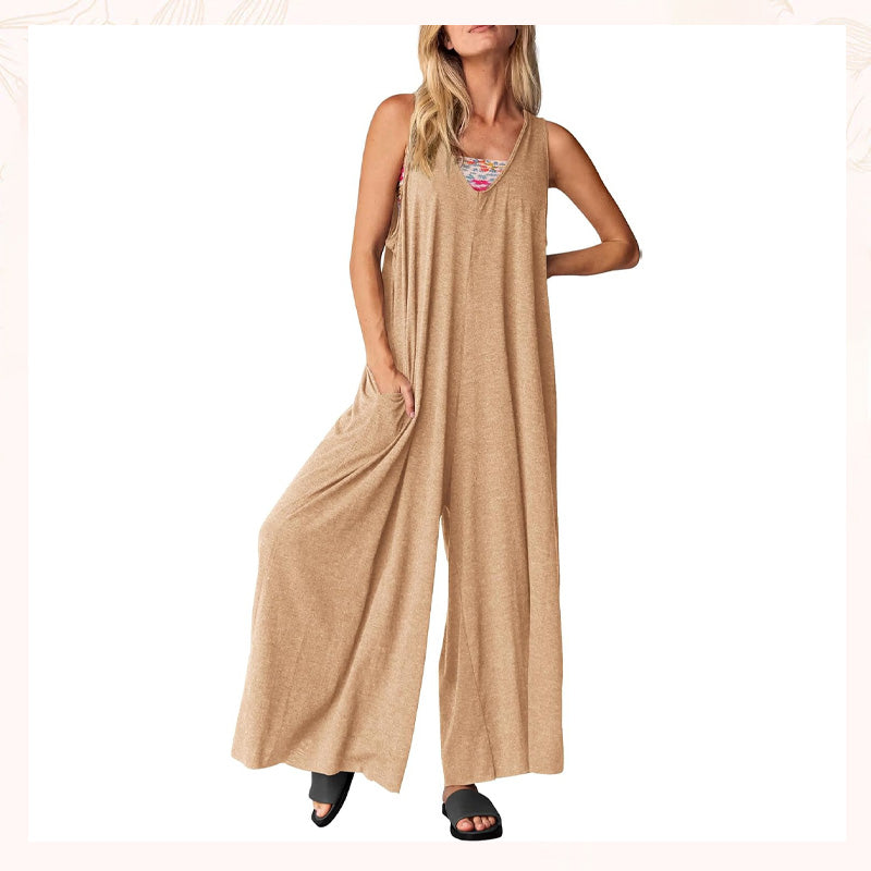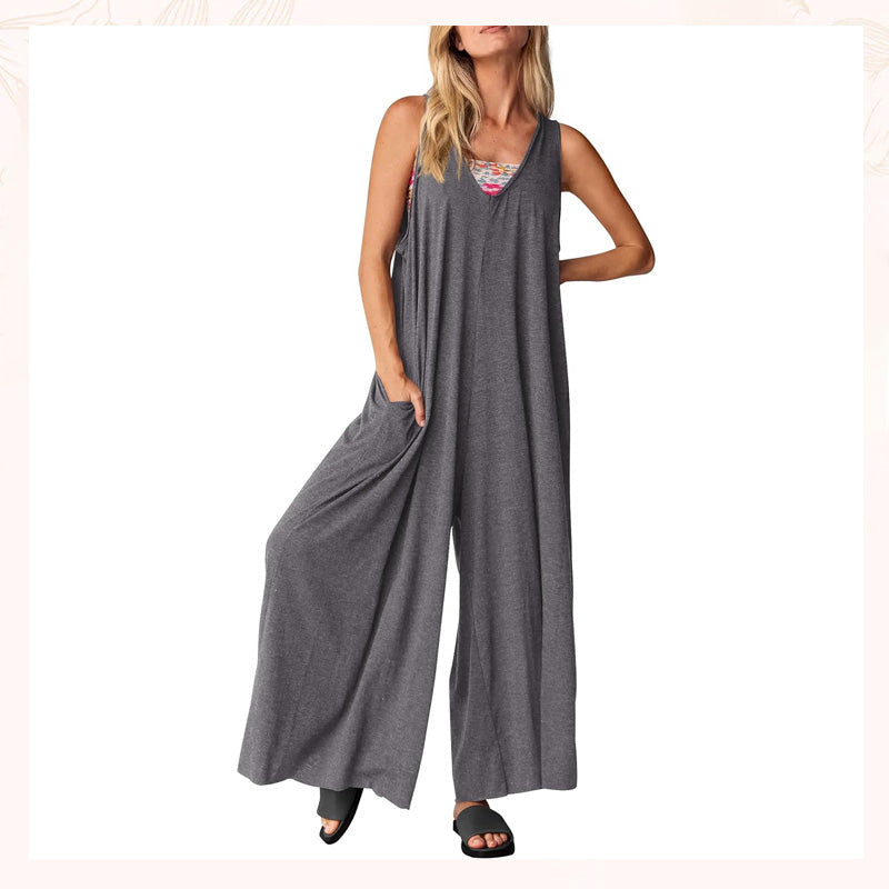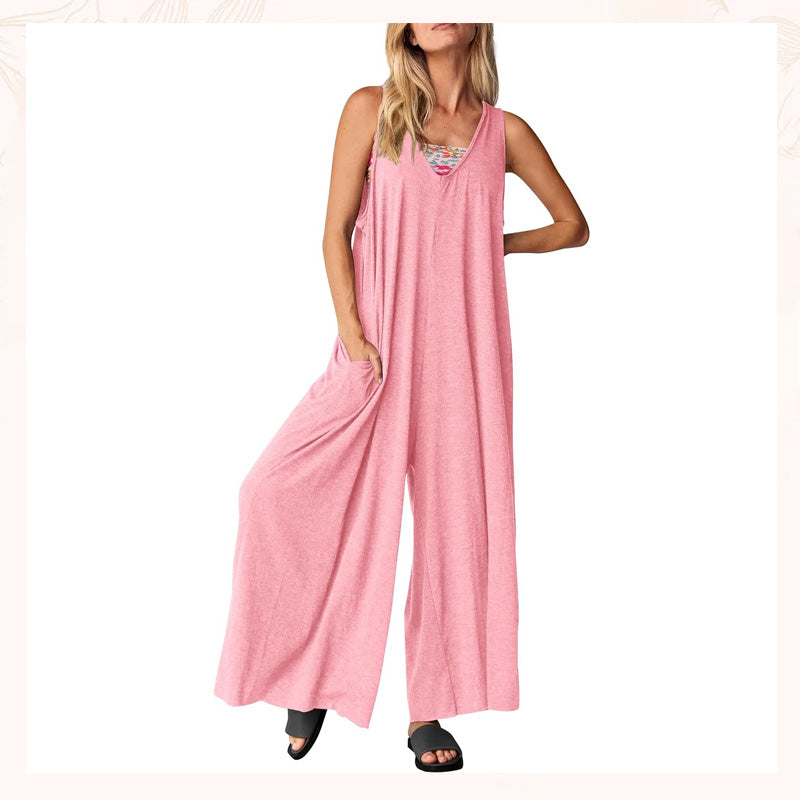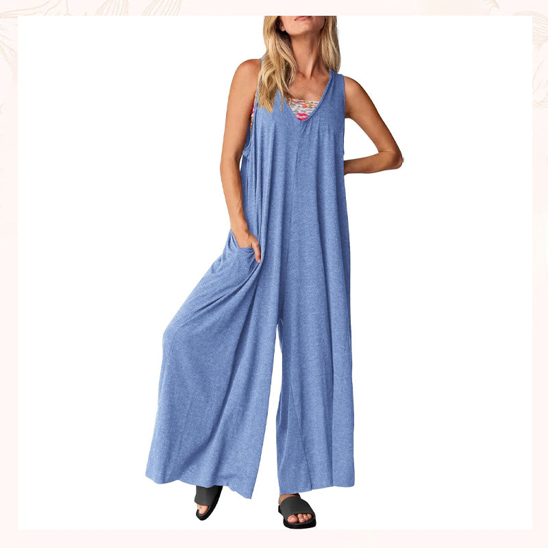 V-ringad ärmlös jumpsuit med vida ben för kvinnor